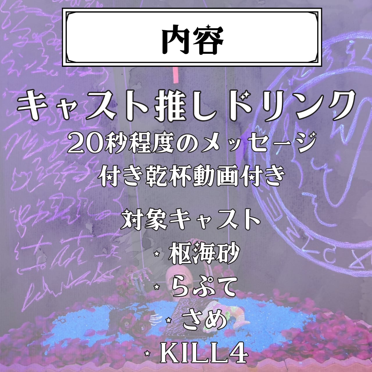 2025年11月2日(日)18:00~2025年11月24日(月)23:59までご購入が可能な「キャスト推しドリンク」の遠隔専用ページとなります。